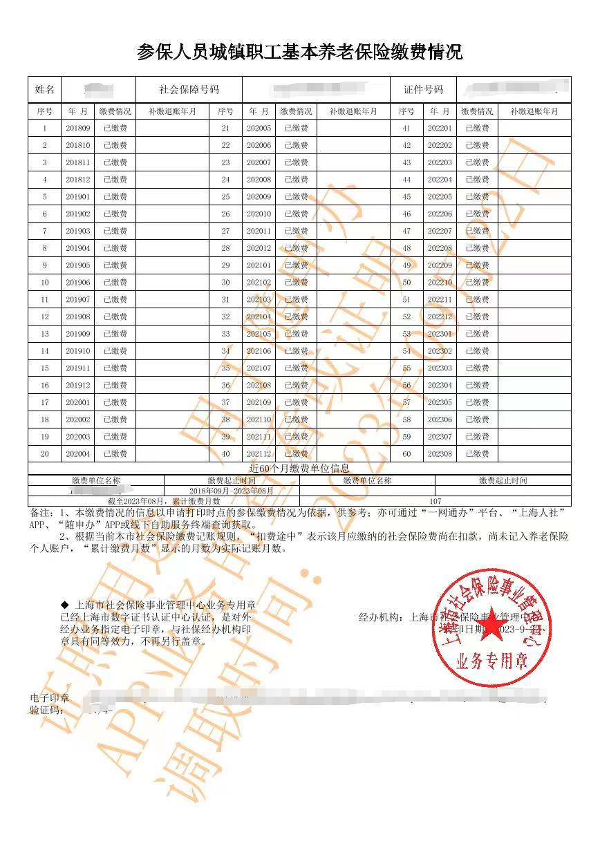 4)非上海户籍往届生提供2025年连续6个月在上海的社保缴费成功记录(随申办APP中搜索“参保人员城镇职工基本养老保险缴费情况”后查询下载相应图片,或至社保网点打印《参保个人城镇基本养老保险缴费情况》),缴费状态是已缴费或视同缴费(样张见附件6