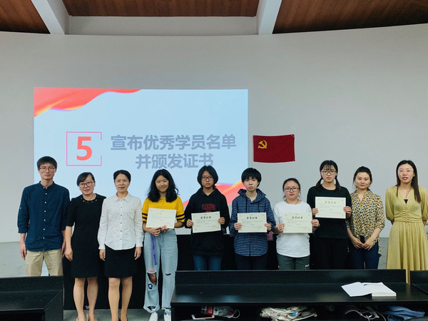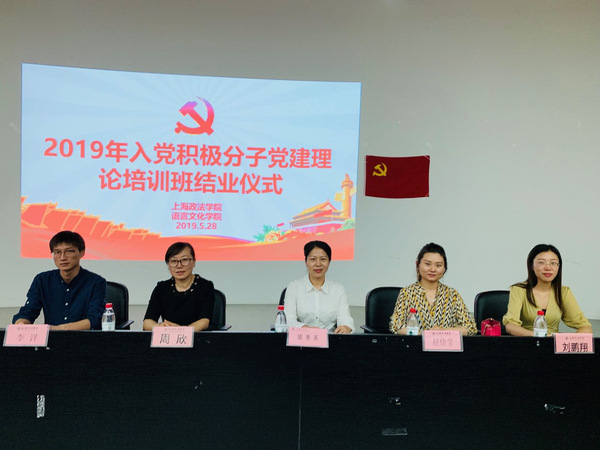 5月28日下午,语言文化学院分党校2019年入党积极分子党建理论培训班结业仪式在明文苑蓝教室举行。语言文化学院党总支书记姚善英老师、党总支副书记周欣老师、学生党支部书记赵倩莹老师、辅导员李洋老师以及学院2019年全体入党积极分子参加了此次结业典礼,主持人为组织员刘鹏翔老师。