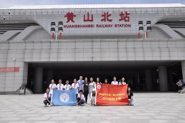 为深入学习贯彻习近平新时代中国特色社会主义思想,引领教育广大青年学生在切实感受新中国成立70周年取得的巨大成就中增强“四个意识”、坚定“四个自信”、做到“两个维护”,切实在建设卓越的全球城市和社会主义现代化国际大都市的生动实践中受教育、长才干、做贡献,勇做担当民族复兴大任的时代新人,经过前期申报、并顺利通过我校团委的校级项目考核,语言文化学院于7月3日正式开启“情系留守儿童,爱心筑梦成长”——赴安徽黟县金家岭村暑期社会实践活动,这也是我校连续3年到金家岭村进行爱心支教活动。