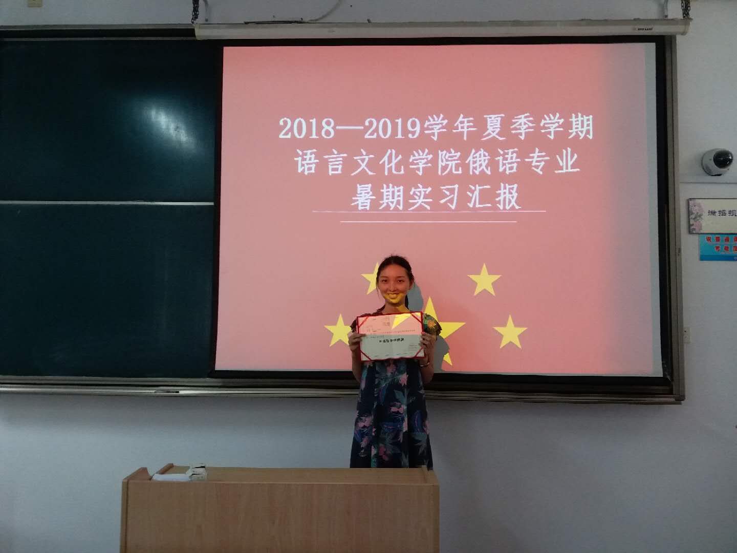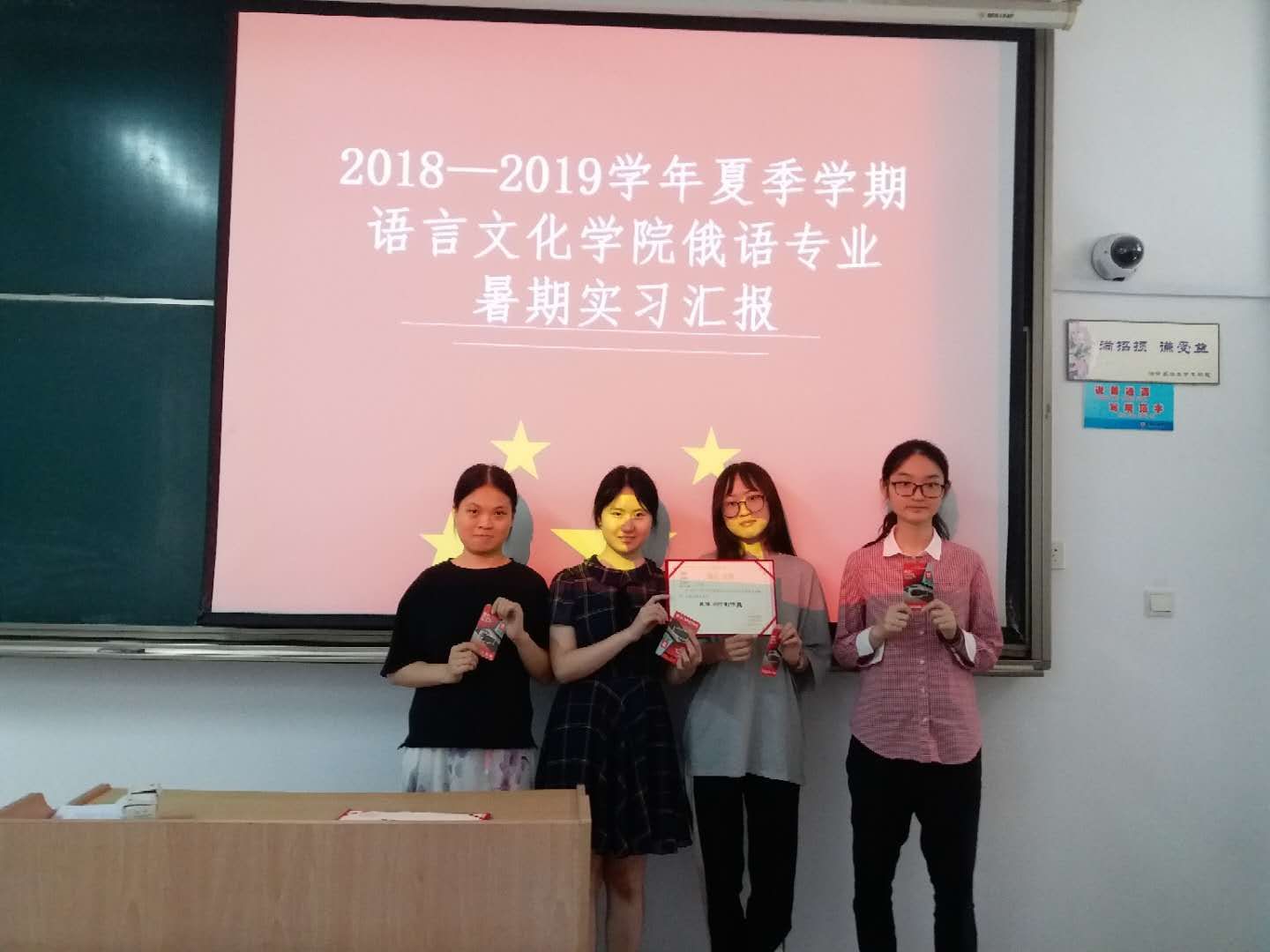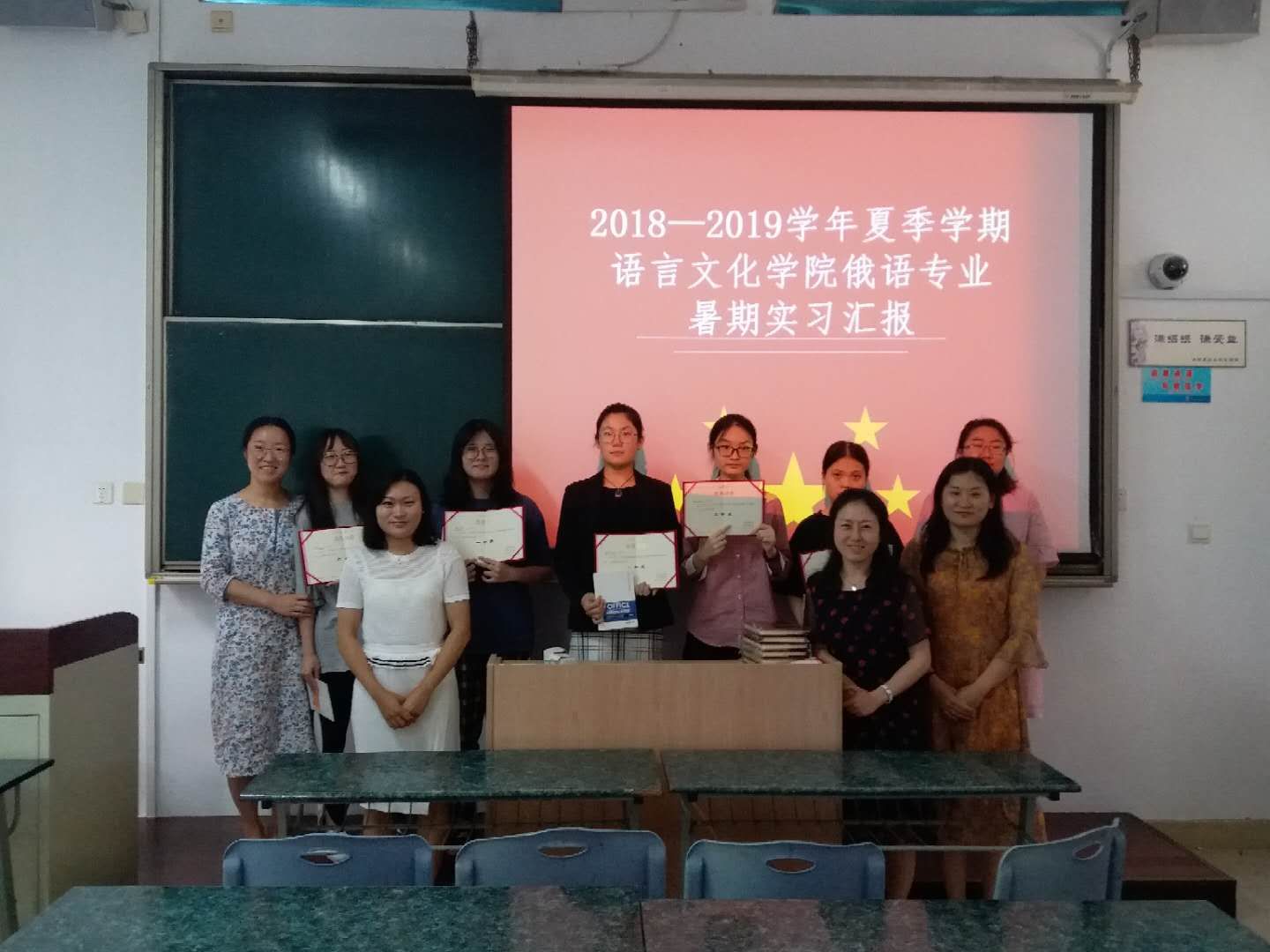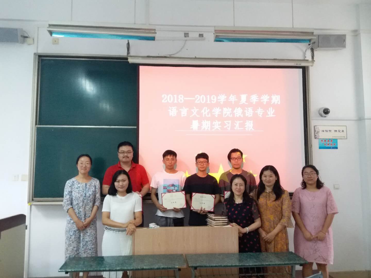 本着公平、公正地原则,俄语教研室导师团队从参加汇报的学生中评选出了一等奖、二等奖、三等奖、优胜奖、个人奖若干。其中,杨文希、柴蔚佳获得最佳语音语调奖,李奇彤、狄盈诣获得最佳个人表现奖,张继月、方德芳、李梦兰、张示迦获得最佳PPT奖。此次获奖及表现优秀地同学还将被推荐到中国—上海合作组织国际司法交流合作培训基地进行翻译实习。