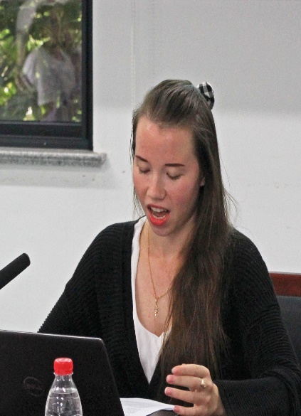 国际政治专业俄罗斯留学生Maria German做了《俄罗斯政府机构性别不对等-克服的原因和途径》的主题发言,她指出:“世界上大多数国家,包括发达国家,或多或少都存在性别不平等问题。性别不对称是男女在不同生活领域的代表不平等:例如,在公共行政、政治、决策领域,男子通常占主导地位。尽管在一些国家,妇女在公共行政、政治方面占多数,但是大多数女性只是担任低级的行政职务,处于弱势地位。对妇女参政人数增加的分析表明,增加妇女参政比例是执行妇女配额制度,只有性别政策的综合改变才能改变公共服务中的性别不对称。必须借鉴发达国家在消除性别不对称方面的经验,并将此类措施纳入国家性别政策。”
