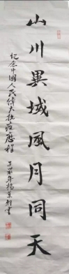 作品介绍:“山川异域,风月同天。”意思是:我们不在同一个地方,并未分享同一片山川;但当我们抬头时,看到的是同一轮明月。既赞扬了中国各地区人民在疫情来临时同仇敌忾,众志成城,取得抗疫历程的伟大进展,同时也赞扬了中国和其他国家之间友好互助,合作共赢的伟大蓝图,令人赞叹。