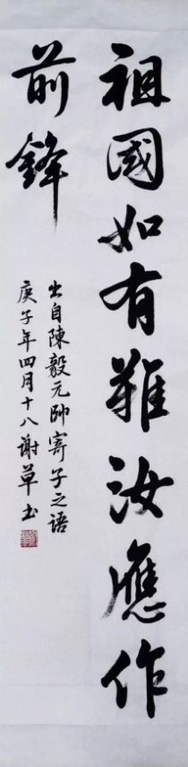 此语为陈毅元帅对儿子的教导。天下兴亡,匹夫有责。当国家有难时,我们应前仆后继,勇敢的踏入战场保卫自己的家国。陈毅元帅对儿子的要求也是对我们当代青年的期望。