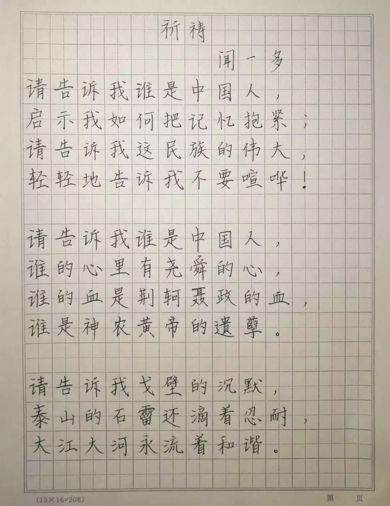 作品介绍:《祈祷》是一首满怀深情的爱国主义诗篇,诗的中心意义就是激赏中华民族的伟大、中华文化的悠久与灿烂。诗人历数了中国历史上无数的仁人志士、英雄豪杰、智慧贤达,表达了一种对中华文明的炽热的情感。同时,诗歌也流露出作者在呼唤民族文化复兴之际的沉痛的现实感受。自从鸦片战争以来,中国社会、中国文化又始终处于西方社会、西方文化的威慑之中,在这样一个大的文化思潮的背景下,闻一多在热烈地赞颂中国文化的同时依然保持着清醒的头脑和敏锐的现实主义意识。