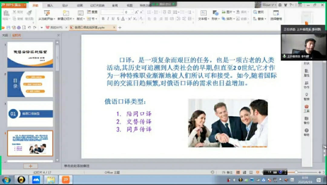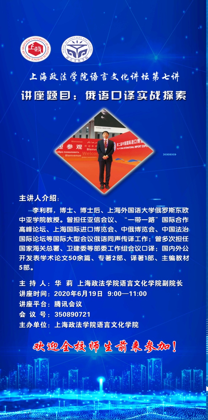 2020年6月19日上午,应新利18官方客服法律翻译与文化研究中心邀请,上海外国语大学俄罗斯东欧中亚学院李利群教授做客我校“语言文化讲坛”,为广大师生做了一场题为“俄语实战口译探索”的精彩讲座。