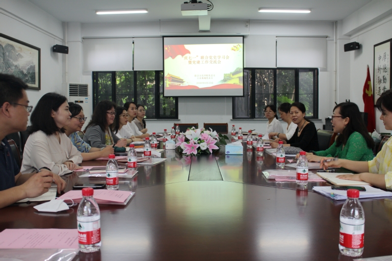 6月23日上午,语言文化学院党总支和上合培训基地党总支在A1-101会议室联合召开“庆七一”党史学习会暨党建工作交流会。共建双方党总支委员、党支部书记、组织员参加会议,会议由语言文化学院党总支书记姚善英主持。