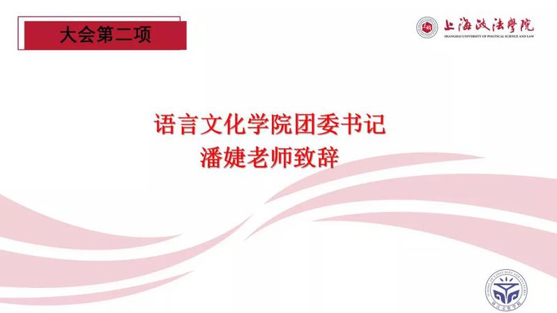 大会开始,语言文化学院团委书记潘婕老师致辞,她肯定了语言文化学院第一届团委学生会这一年来的工作成果,并提出希望未来学生会能继续坚持贯彻实施团结、服务、奉献、拼搏的八字精神,时刻把学生放在第一位,对学生工作永葆热情,继续凝心聚力,乘风破浪;并预祝语言文化学院第二次学生代表大会顺利召开。