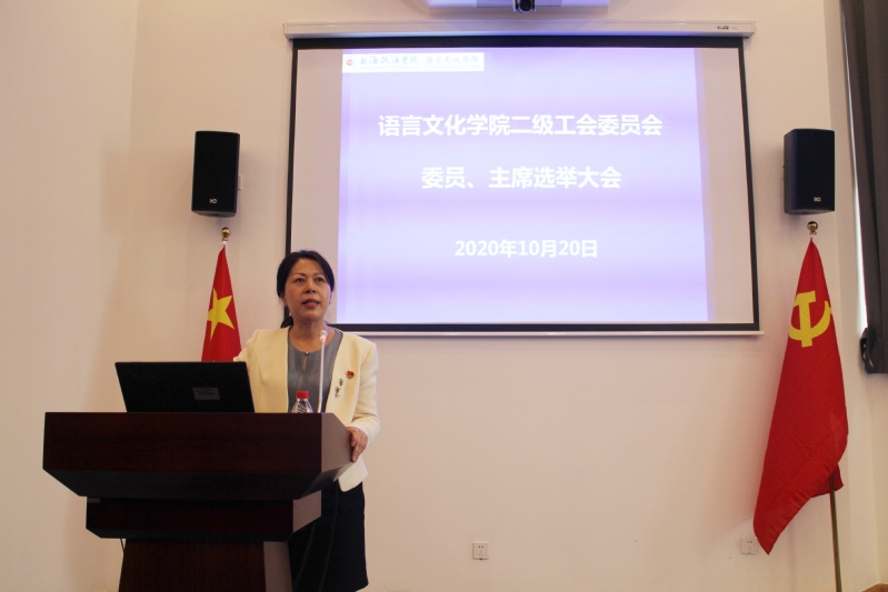 主持人介绍了会议主要任务、报告实际到会人数,宣布大会有效。会议通过了《语言文化学院工会委员会选举办法》、监票人、计票人和候选人名单。与会教师以无记名投票、差额选举方式,经投票、监票、唱票、计票程序,当场公布了选举结果。姚刚、张晓丽、周占军、曹彩霞、赵倩莹五位同志被选为新一届工会委员。随后,新一届工会委员召开会议,通过了《语言文化学院工会委员会主席选举办法》,并进行无记名投票,姚刚同志当选为语言文化学院分工会主席。整个选举过程流畅、公正、透明。