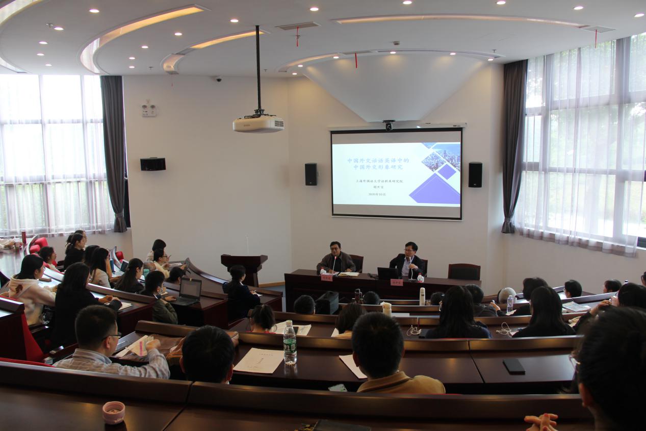 讲座中,胡开宝教授从批评话语分析理论入手,采用语料库方法,从高频词、关键词、情态动词的应用和"we"的搭配等角度,分析了中国外交话语英译文本所塑造的中国外交形象。研究表明,中国外交话语英译所塑造的中国外交形象主要表现为脚踏实地、积极有为,热爱和平,重视合作与发展,追求共赢等特征。这些特征的形成不仅与中国外交政策和中国文化价值观有关,而且也与译者翻译策略和方法的应用相关。胡开宝教授总结了从外交话语英译文本的句法结构应用角度进行中国外交形象研究的意义与效果。他强调,近年来,中国政府高度重视中国文化软实力的提升,大力推进中国文化走出去战略的实施。在这一历史语境中,中国形象研究愈来愈受到学界的高度关注。