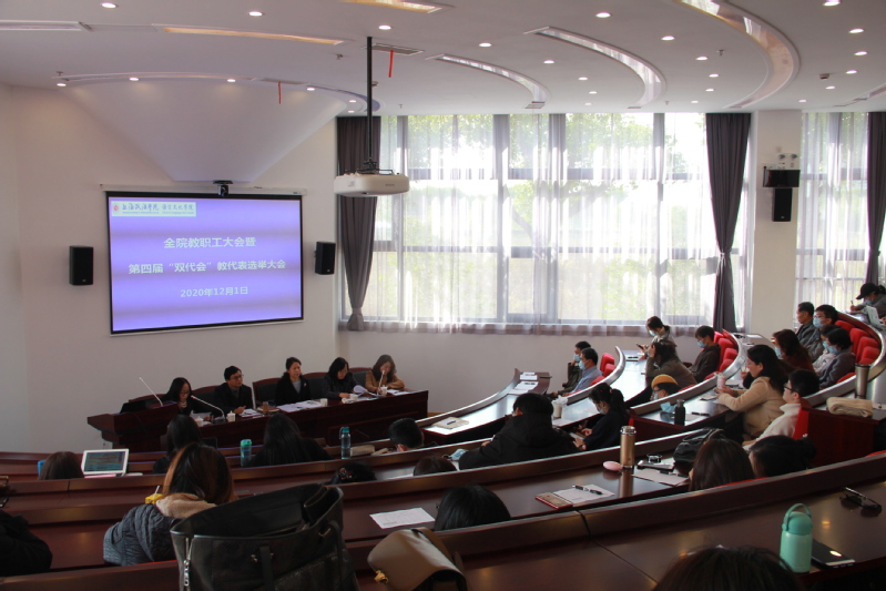 12月1日,语言文化学院在上合基地113会议室召开全体教工大会暨教代表选举大会,会议就本年度多个议题分多个环节进行了汇报、审议和选举。