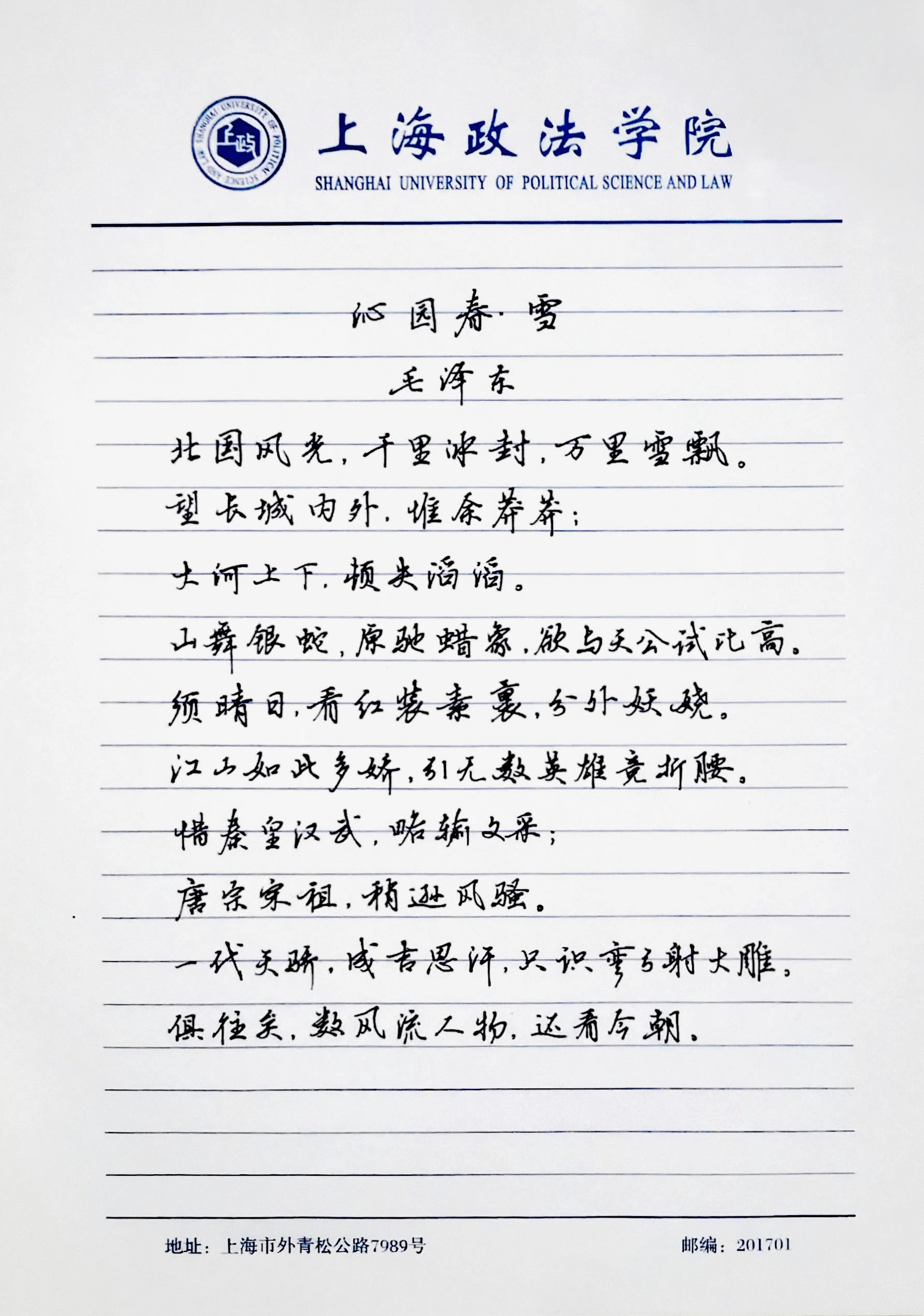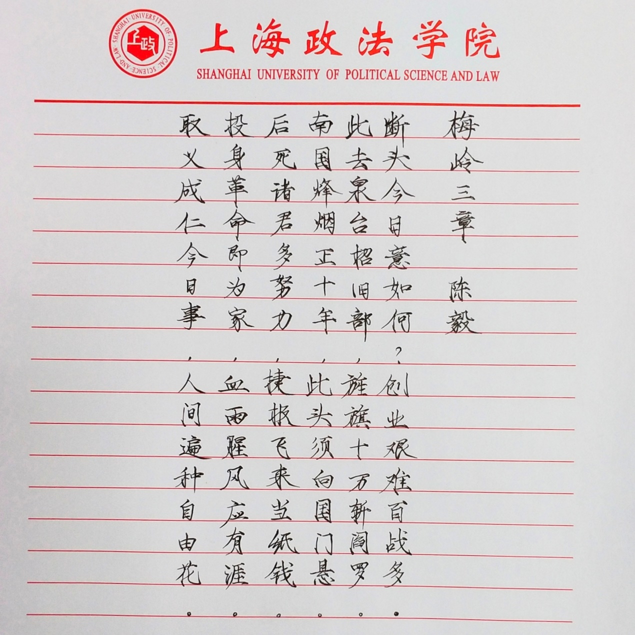 在活动报名期间,共计收到全校46名参赛者的48份作品。作品中的每一个笔划,都寄托了上政学子对中国共产党的真诚祝愿和对中国传统文化的浓厚感情。