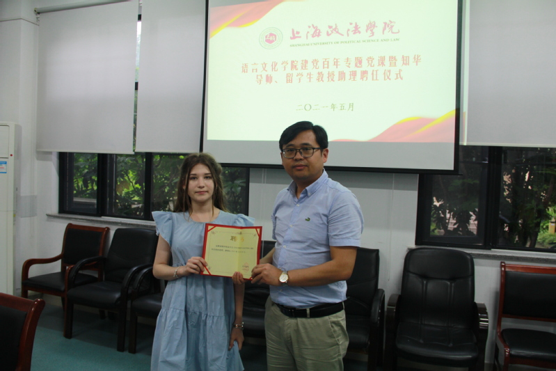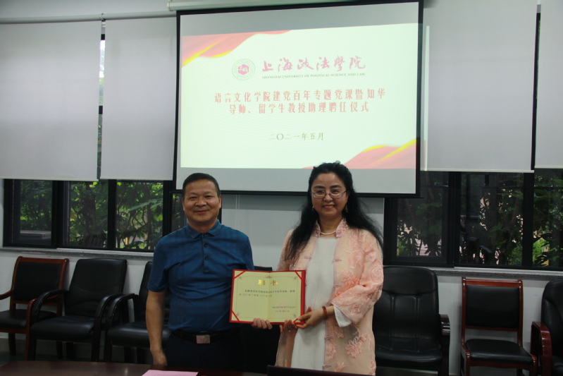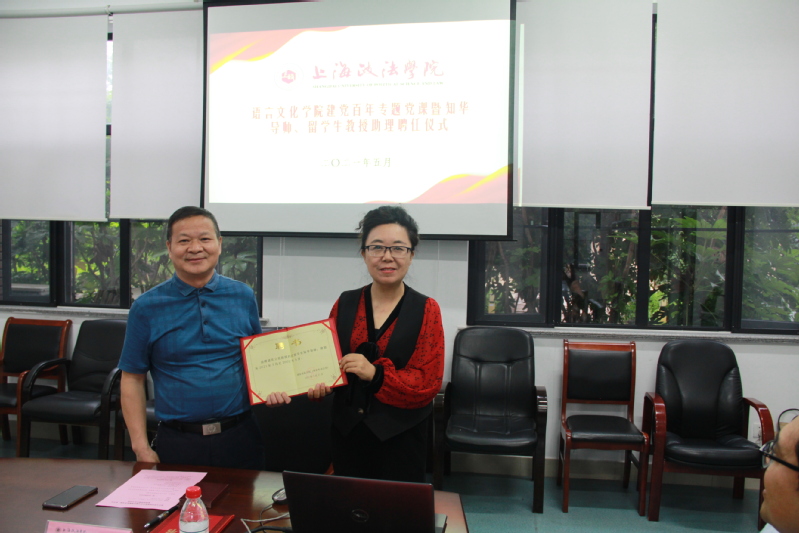 仪式上,欧阳美和为语言文化学院常立霓教授、李诗芳教授颁发了知华导师聘书,魏传成为国际交流学院留学生凯特(俄罗斯籍)、宋江(乌兹别克斯坦籍)颁发了留学生教授助理聘书。