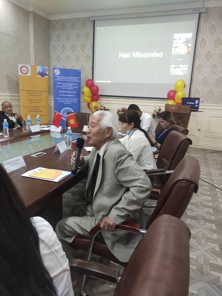 伊玛佐夫教授现为吉尔吉斯斯坦国家科学院院士、功勋科学家,长年担任吉尔吉斯斯坦国家科学院东干学与汉学研究中心主任,为东干学研究做出了卓越的贡献。他认为东干学是吉国汉学研究的重要组成部分之一,并深情追溯了东干学研究发展历程,同时对东干学进一步发展与突破提出了构想与建议。