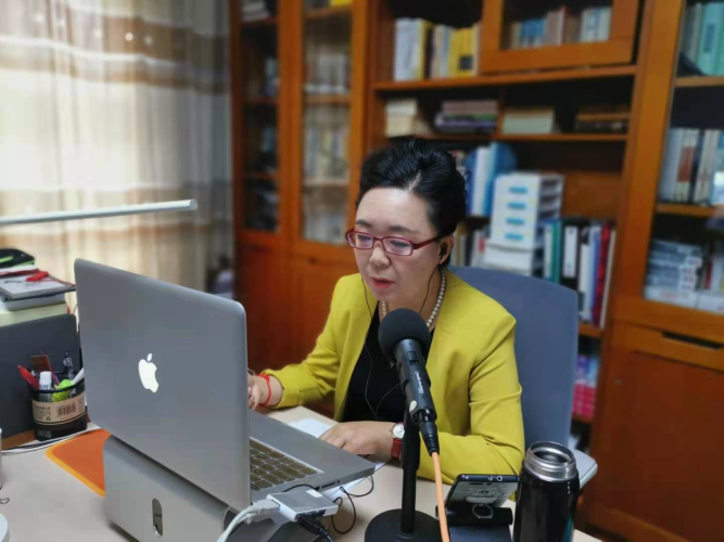 (杨军红副教授、赵凤彩副教授、岳强博士、张晓玲博士在语言文化学院东干文化研究中心参加线上会议)