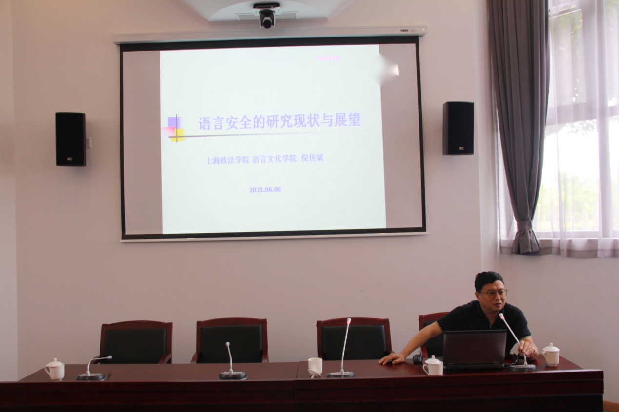6月8日下午,语言文化学院特聘院长倪传斌教授为全院教师作“语言安全的研究现状与展望”的专题讲座,本次讲座由学院党总支副书记(主持工作)魏传成主持。