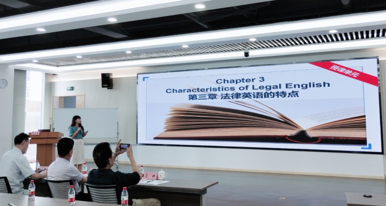徐文姣老师以《法律英语》为讲授课程,以“法律英语的特点”为知识点,激情饱满、生动形象、深入浅出地向大家讲授了法律英语的主要特点及其学习策略,教学效果受到了评委专家和观摩嘉宾的广泛好评。