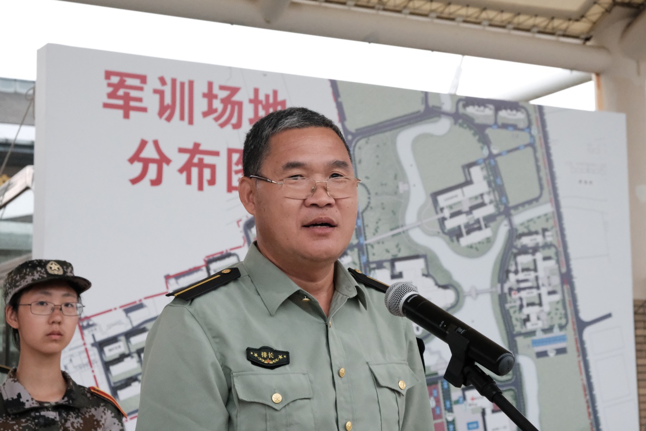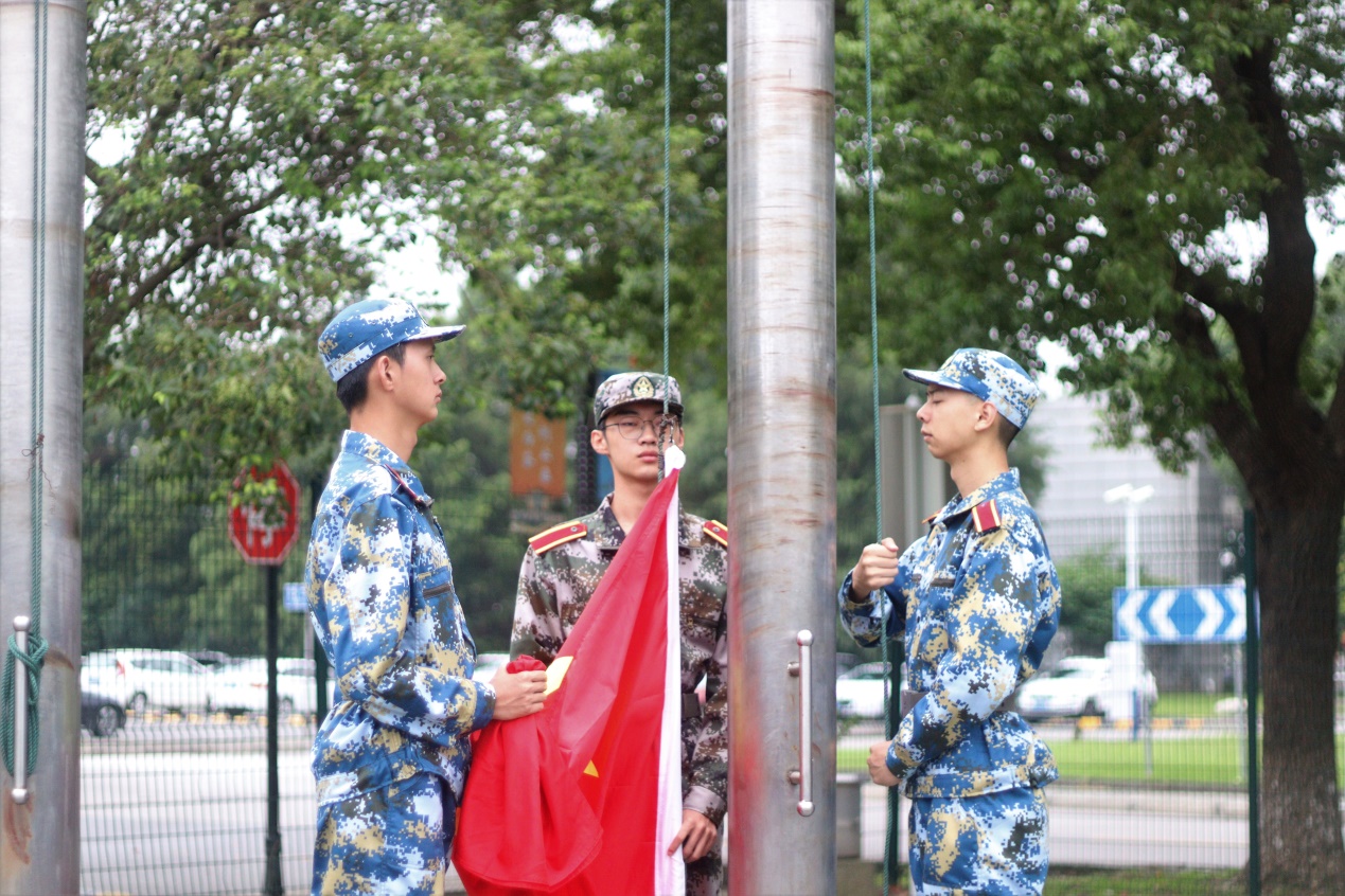 9月7日清晨,语言文化学院主持举行学校军训升旗仪式。升旗手由36排蒋国楠、38排高航宇、77排孙焕然担任。国歌奏响,全体参训人员行注目礼,国旗迎着风,缓缓上升。