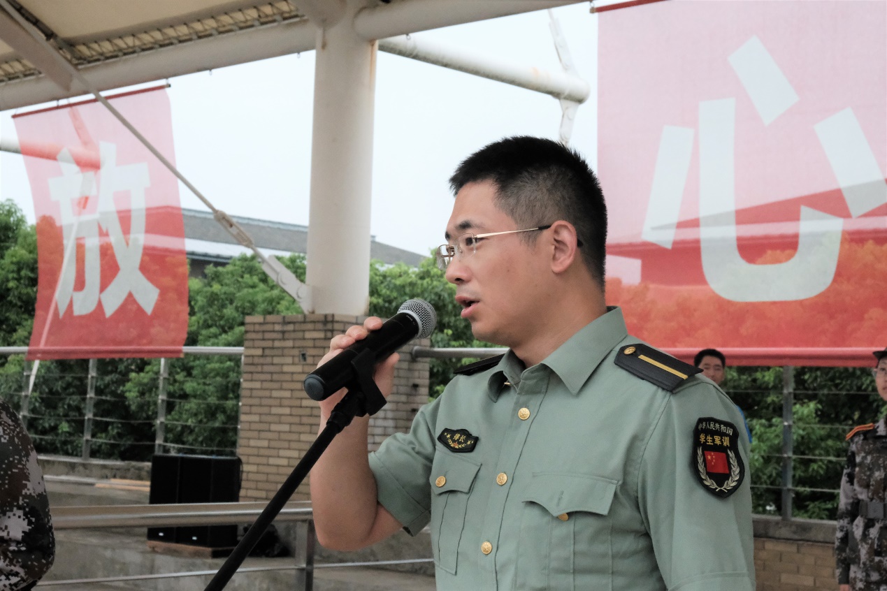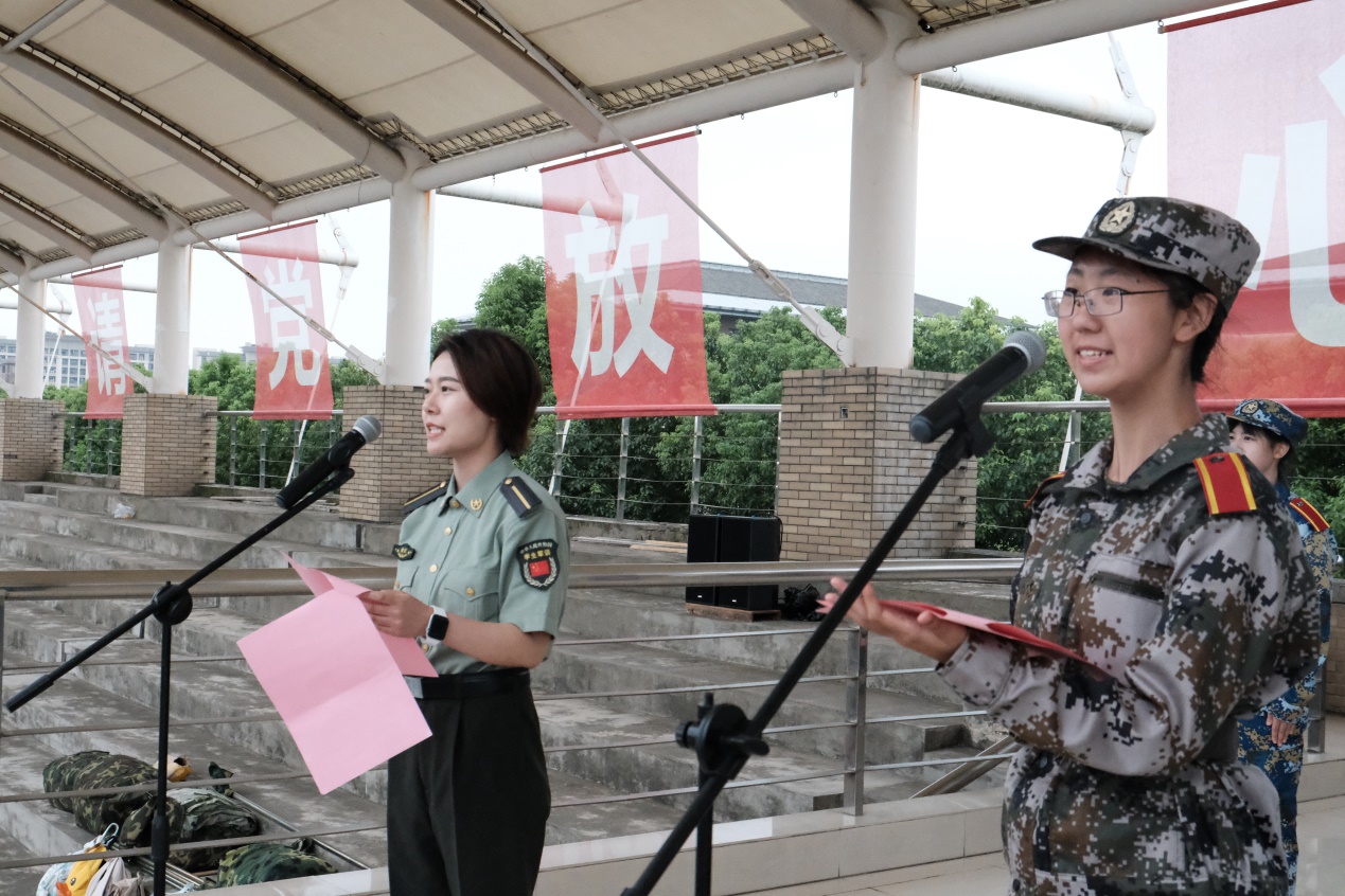 升旗仪式第二项是朗诵语言文化学院军训排班训,在语言文化学院2021级辅导员潘婕和79排沈阳的领诵下,全体参训学生朗诵了我院军训排班训:“自己的事情自己做,别人的事情帮着做;大家的事情一起做,不会的事情学着做。”无论是在军训还是在日后的生活中,都该谨记。首先要具备独立自主能力,其次同学间要互帮互助,团结协作。最后,还要不断求知探索,不会的事情努力学会。