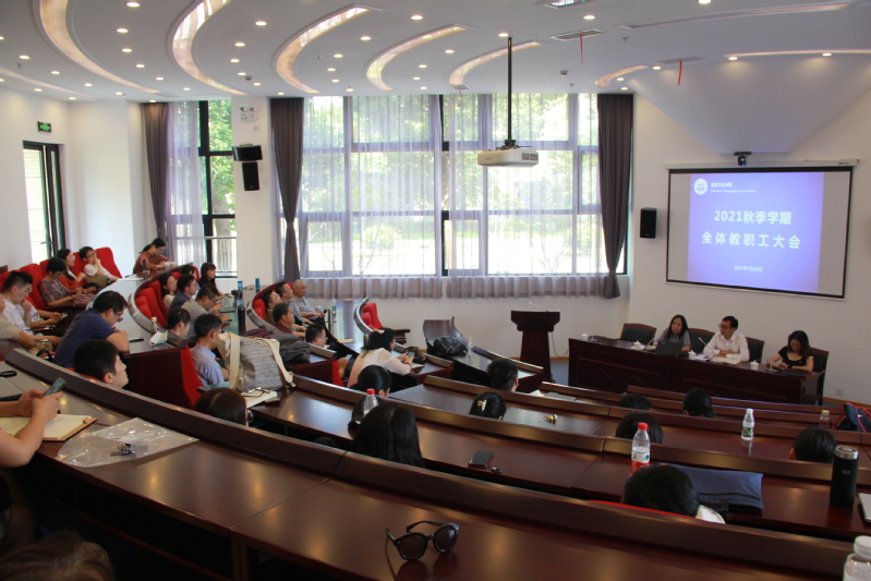 9月28日中午,语言文化学院在上合基地107会议室召开了新学期全体教职工大会,副院长夏甘霖、华莉及学院全体教职工参加会议,会议由党总支副书记(主持工作)魏传成主持。