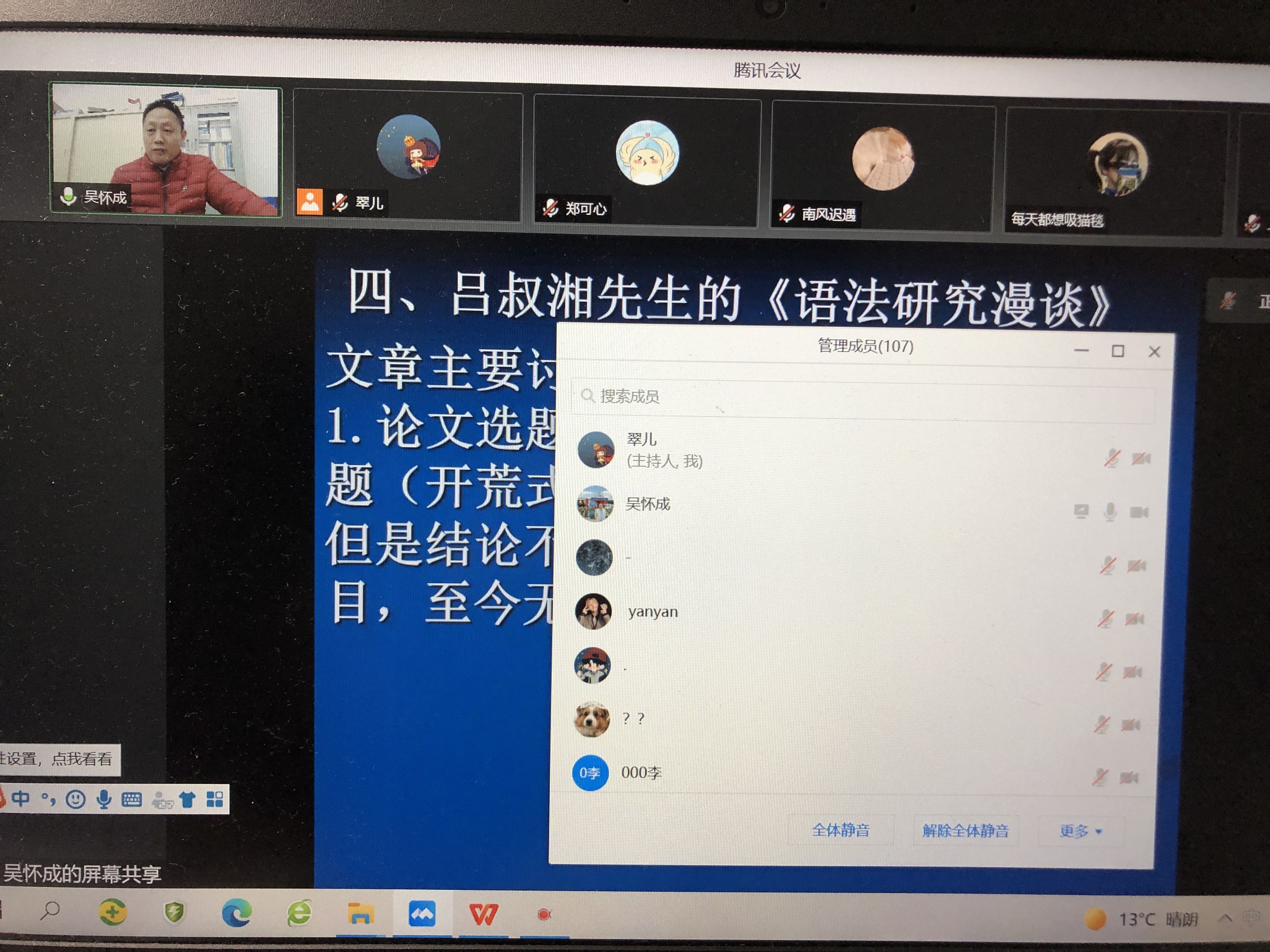 11月10日,语言文化学院中文专业举办了学术论文指导专家讲座,主讲人为上海对外经贸大学国际商务外语学院吴怀成副教授。讲座以线上会议形式举行,由汉语国际教育专业教研室主任李翠博士主持。