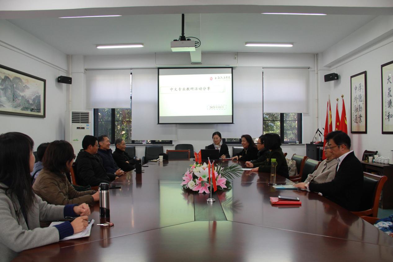 11月23日,根据学校2021年教学交流活动计划,语言文化学院汉语言文学教研室和汉语国际教育教研室在A1—101会议室联合开展主题为“新文科建设视野下学生培养模式改革”的教研活动。除两个教研室教师参与讨论,还邀请到教务处督导谈青老师作为嘉宾。