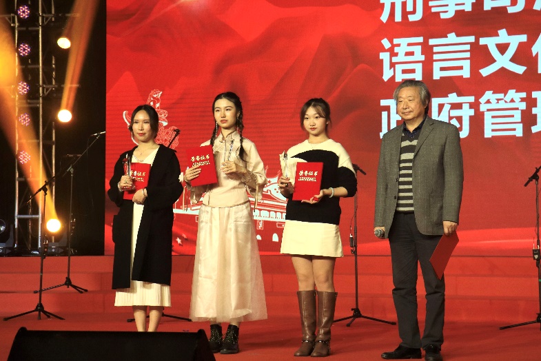 演唱结束后,孙焕然、崔倩、康迈三位同学作为学院代表参与党史知识问答和听歌识曲环节,正确回答2题,为语言文化学院拿下1分。