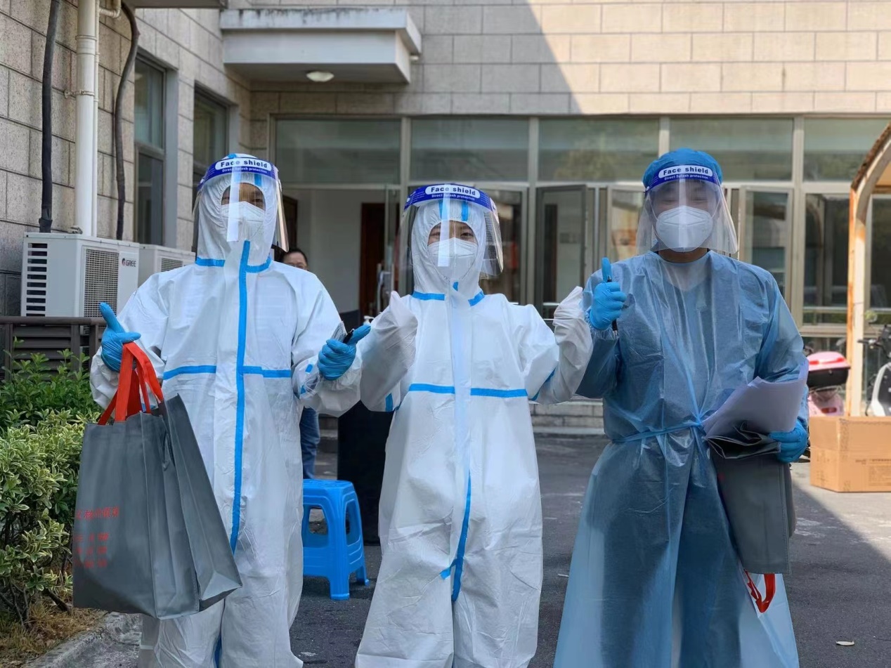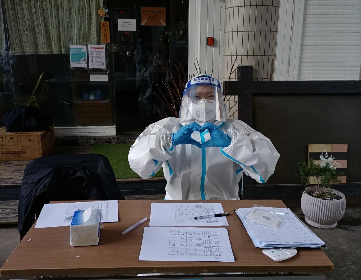 学生党支部书记潘婕,按学院党总支的要求,立即通过“先锋上海”小程序,向所在地的居民区支部委员会报到并积极投身防疫工作。多次参与社区核酸检测、上门发放抗原自测试剂、社区物资搬运等工作。