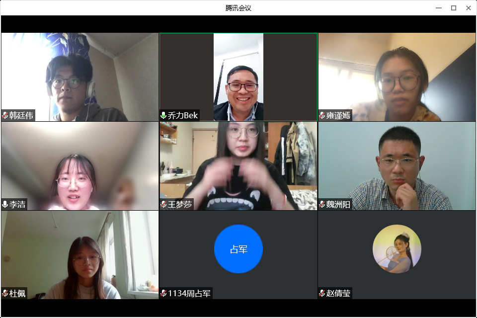 五位同学依次汇报了所在地社会形势、疫情情况、生活和学习状况、遇到的困难、下一阶段学习与生活规划。学生们对学院的关心与指导表示感谢,认为这次赴外交流学习的经历是一次非常特别的体验,使得他们在短时间之内迅速成长。他们表示将克服困难,保重好身体,做好自我防护,认真学习,充分展示中国留学生的良好风貌。
