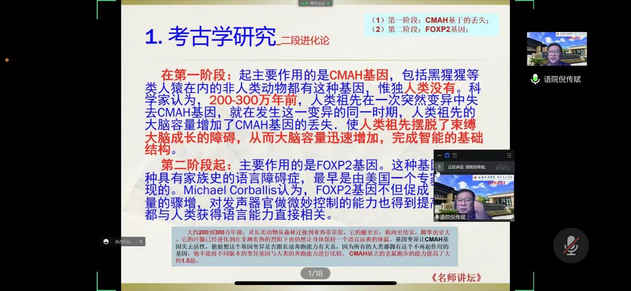 此次讲座内容详实,深入浅出,使参会师生对基因与语言之间的联系与影响有了深刻了解,进一步拓宽了学术视野。