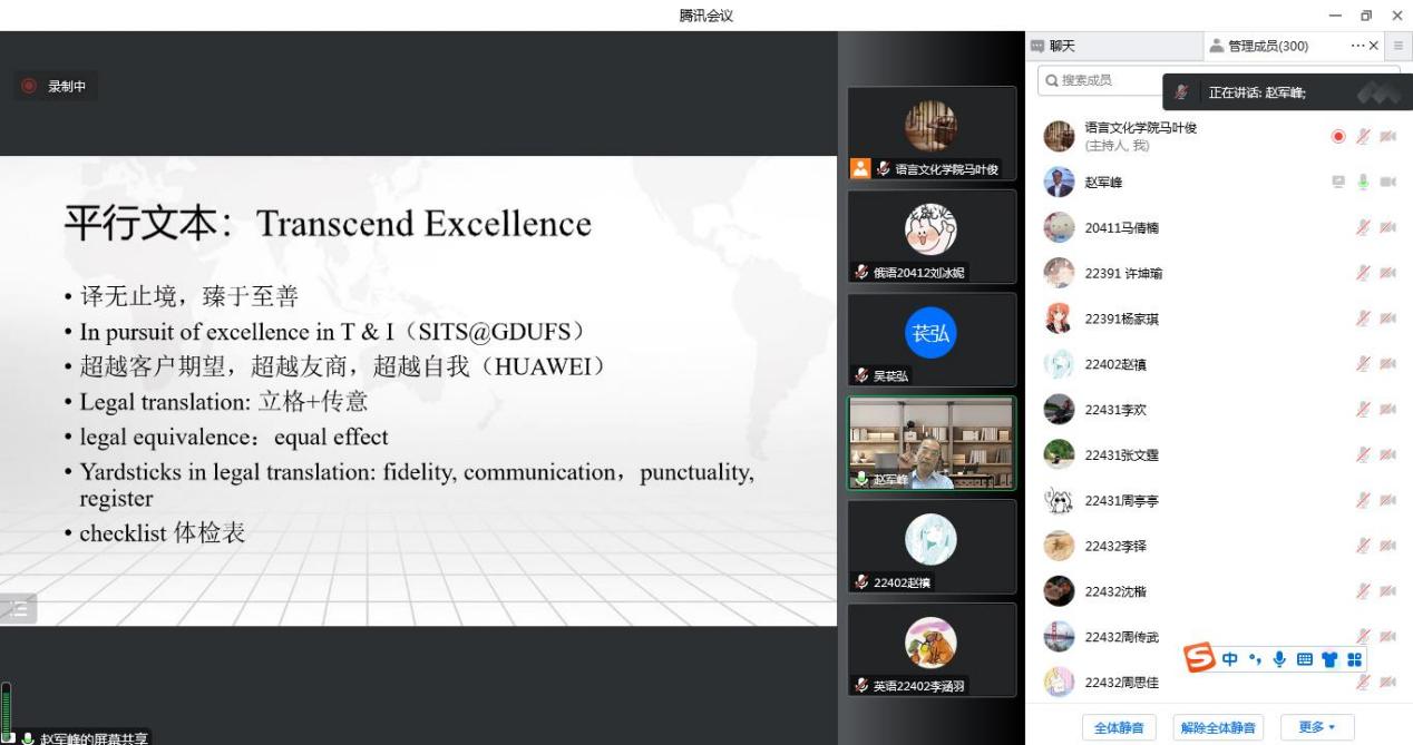 讲座最后,对于老师和同学们的提问,赵教授也一一予以耐心细致的解答。此次讲座内容充分详实,深入浅出。加深了参会师生对法律翻译策略的理解,拓宽了学术视野。