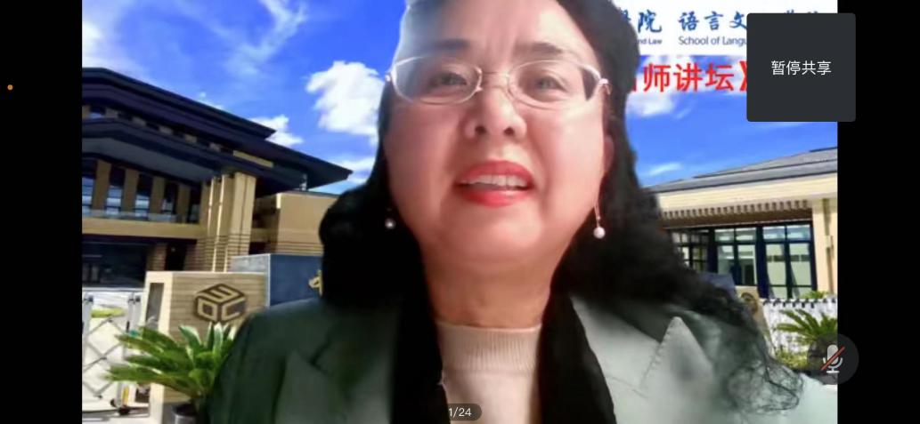 12月28日晚,由教务处、语言文化学院(国际交流学院)共同主办的“名师讲坛”第33讲开讲。我校李诗芳教授作了题为“刑事庭审中‘指称系统’及‘三问’的语用意义”的线上讲座。讲座由语言文化学院(国际交流学院)胡道华副教授主持,二百多名师生在线参与。