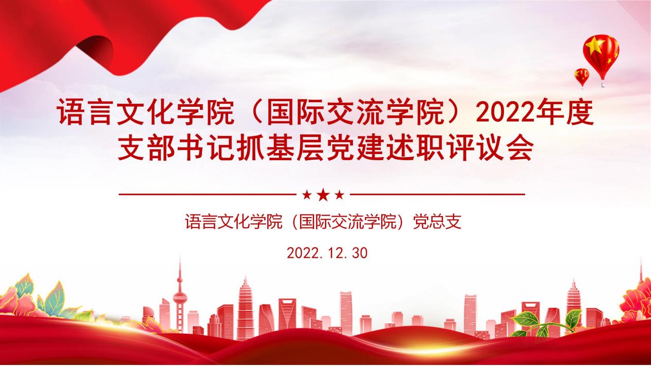 12月30日下午,语言文化学院(国际交流学院)党总支召开2022年支部书记抓基层党建述职评议会,学院党总支委员、教工及学生党支部书记、党员代表参加,会议由党总支书记魏传成主持。
