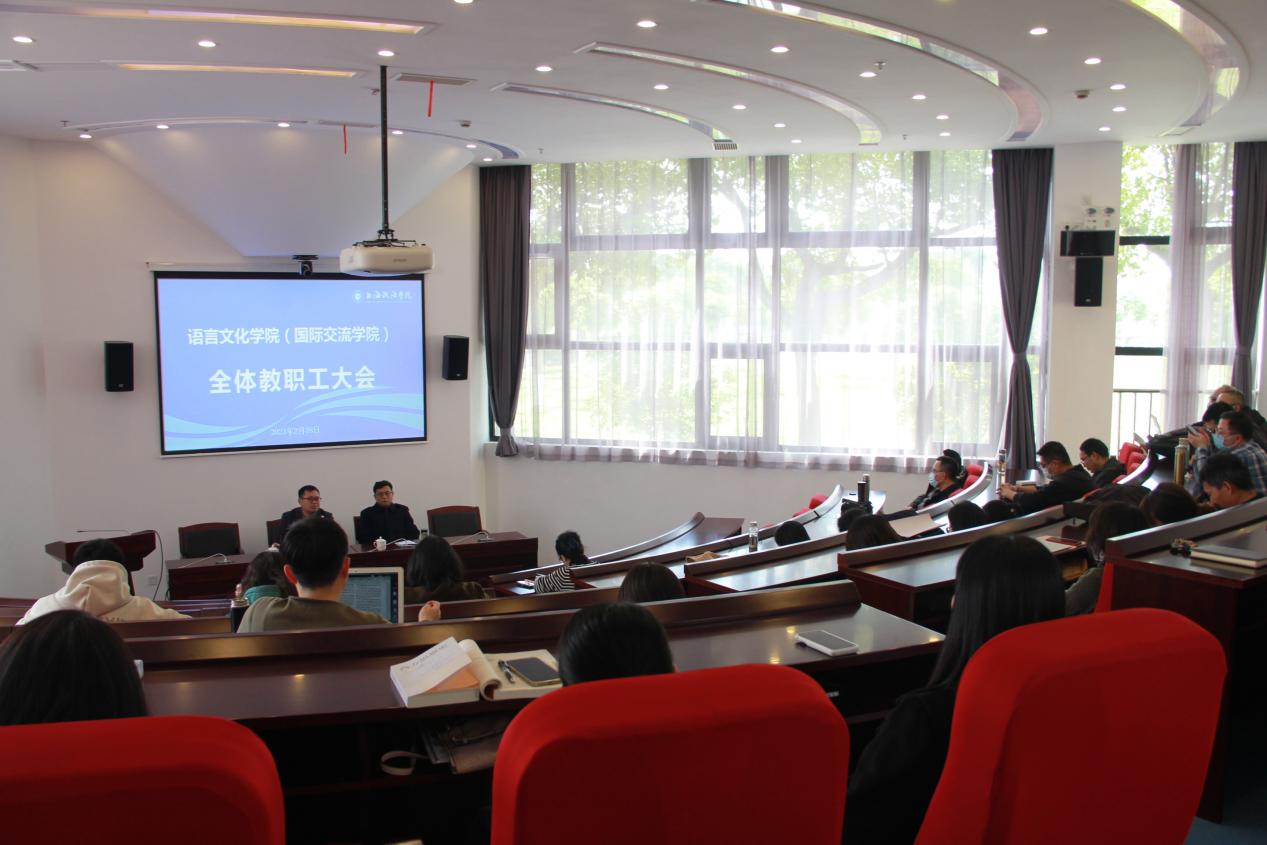 2月28日中午,语言文化学院(国际交流学院)在上合基地113会议室召开新学期教职工大会,学院党政班子成员及全体教职工参加会议。会议由党总支书记魏传成主持。