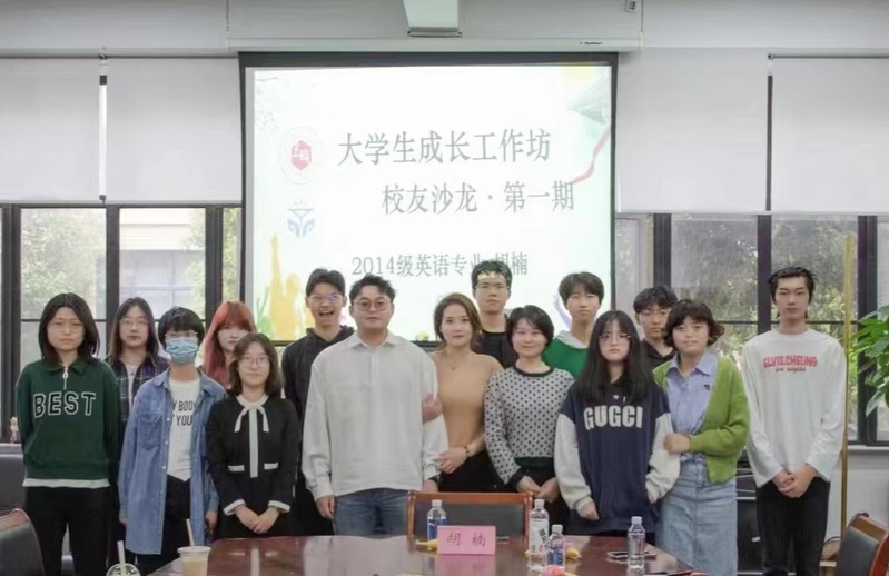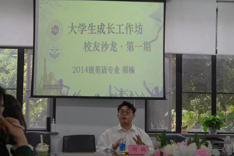 胡楠系学院2014级英语专业毕业生,现上海策籍科技有限公司创始合伙人和COO,上海束优科技创始合伙人。他结合个人求学和工作经历,聚焦学生就业与发展问题,向同学们分享了创新创业方面的宝贵经验,帮助同学们消除内心困惑,找准职业定位,开拓自身视野,更好地规划未来发展,为将来的择业就业打下稳固基础。他鼓励在校学生“能在以后的学习和工作道路上能不断突破自我,成为学校的骄傲。”