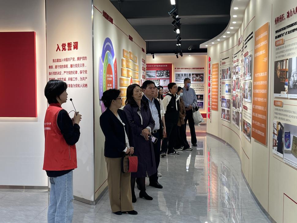 首先,我院党总支一行参观了上海对外经贸大学党建服务中心。该服务中心是上海市教卫工作党委系统示范性党建服务中心,建有新时代上海高校党建创新实践分基地,包括三个主题展和四个功能区。中心以“红色引擎助力贸易强国”为主题,展示上海对外经贸大学党建引领贸易强国建设的探索、实践与成果。