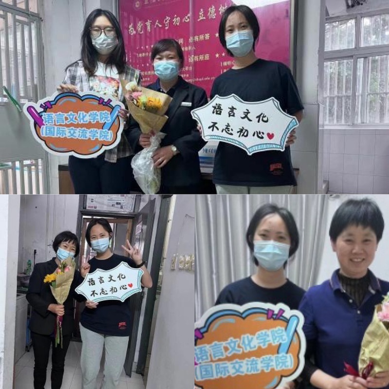 活动最后,心理工作站的同学们还在社区进行一场特殊的“以爱换花”活动。春雨润物无声,宿管阿姨在平日里对同学们关怀备至,同学们亦是感恩宿管阿姨的辛勤付出,特地为阿姨们献上了承载着感动与感谢的花束,并与阿姨们合影留念。