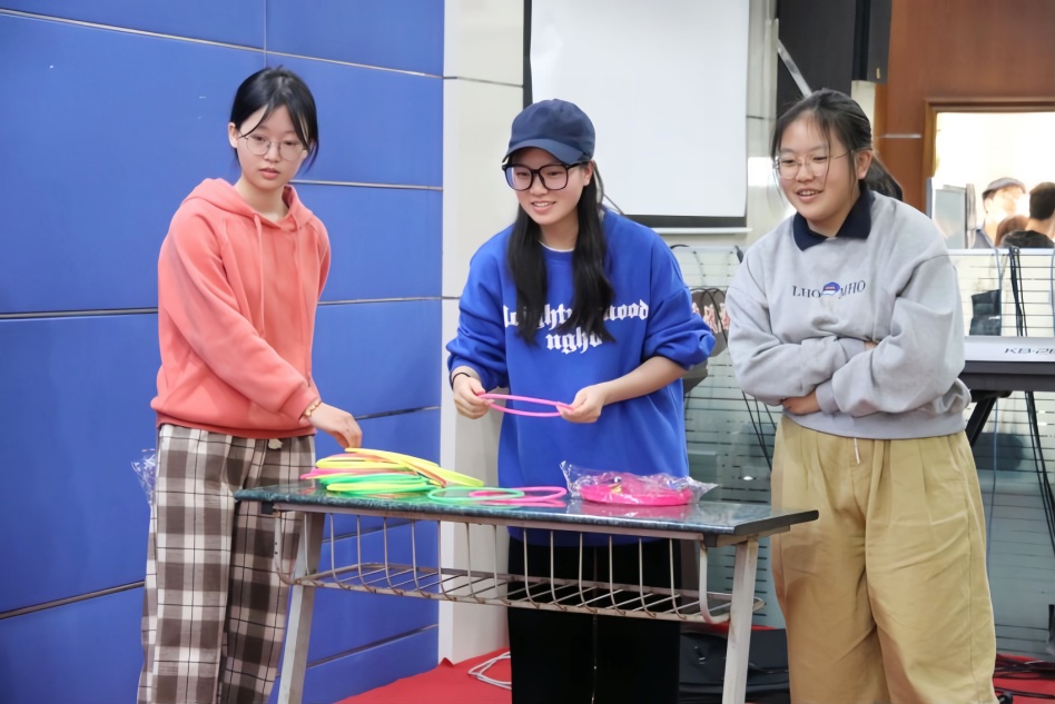 此次文艺专场活动共设两个版块:摊位互动和文艺展演。演出开始前,场内设有两个互动摊位,分别为书法摊位及套圈摊位。翰墨香书画社成员现场题字,墨香氤氲,笔走龙蛇,营造出古色古香的书法氛围。套圈摊位亦反响热烈,同学们身子前倾将圈掷出,在收获小礼品的同时也重拾童年最纯粹的美好。