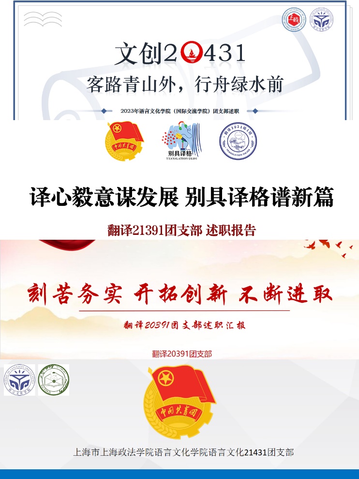 其中,文创20431团支部以文创专业为特色,守正创新,做经典文化IP的守望者,积极开展跨支部联动交流,通过各类新媒体平台展现支部风采;翻译21391团支部依托翻译专业优势,打造“红色外语+”文化品牌,支部活动覆盖深化四史学习教育、传承优秀传统文化、融合劳动美育实践、热心社会公益项目等领域。俄语20411团支部坚持将理论学习和专业实践相结合,定期开展时政双语训练,从支部到个人、个人到支部,集体凝聚力强;文创21431团支部立足专业特点,着力打造新媒体公众号宣传品牌,创设多类专栏以加强支部成员理论学习、专业认同与能力提升;翻译20391团支部以思想引领为基础,打造青年志愿服务实践品牌,支部成员活跃在进博会、爱心助教、关爱病童等志愿岗位;翻译22391团支部注重工作方法总结,以务实精神打造“一个基础,四个发散”工作原则,有力提升支部工作效能。