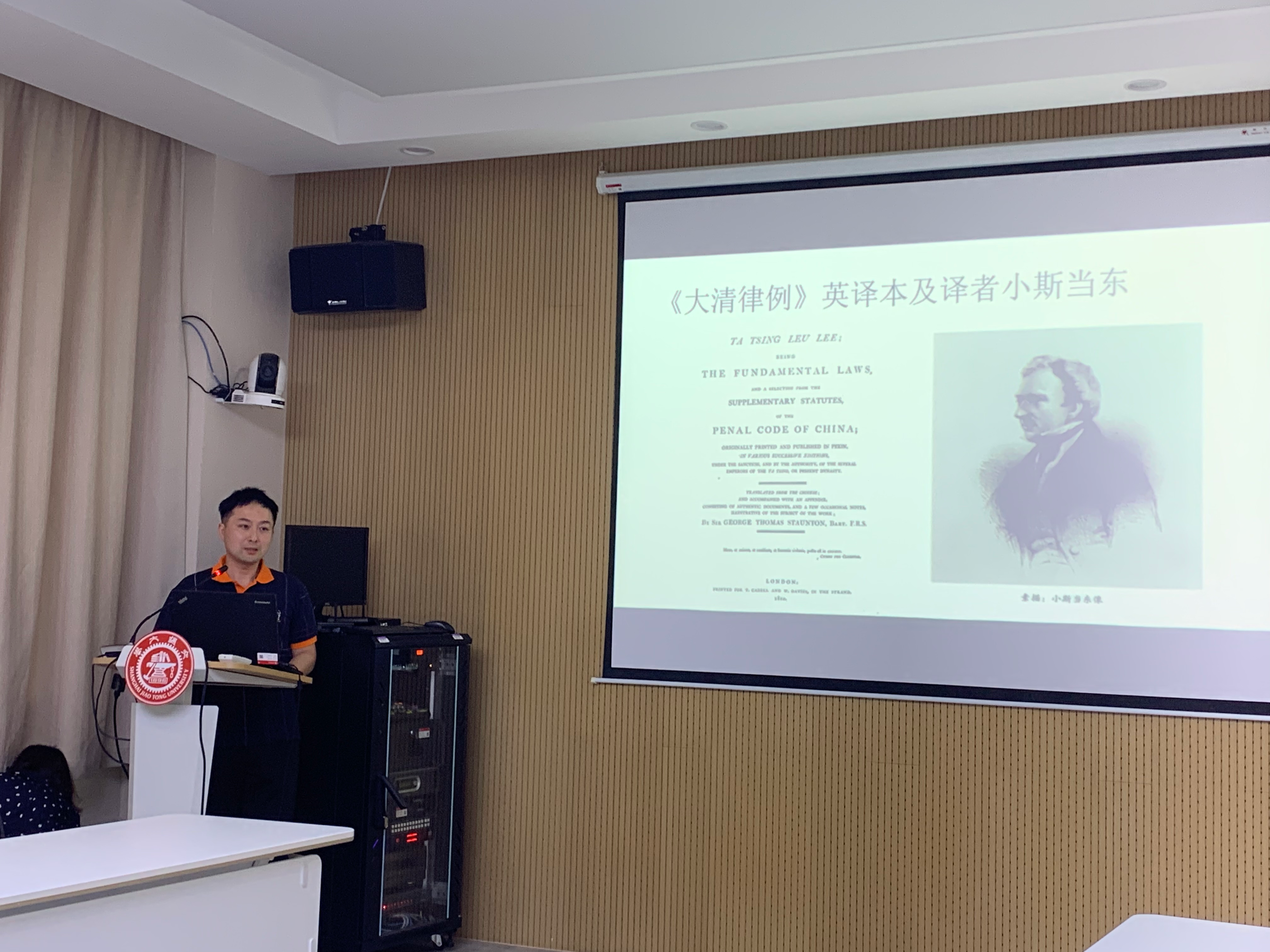 王春荣作了题为“《大清律例》在法语世界译介的研究”报告,并指出《大清律例》在法语世界的整体翻译传播历程了由最初的“中国兴趣”阶段逐步走向探究“中华法律文化”的深入,可谓是中华法律文化百年西传史的缩影。
