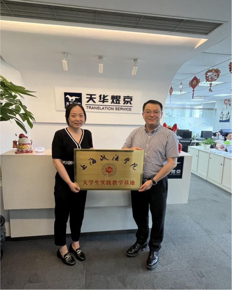 7月10日上午,语言文化学院(国际交流学院)和上海天华煜京翻译有限公司举行共建大学生实践基地揭牌仪式。上海天华煜京翻译有限公司董事长兼总经理黄庆、语言文化学院(国际交流学院)副院长夏甘霖、英语专业教研室主任陆月华等出席了揭牌仪式。双方就实习条件、时间安排、实习基地建设与发展、学生培养和指导等相关事宜进行了深入的交流。