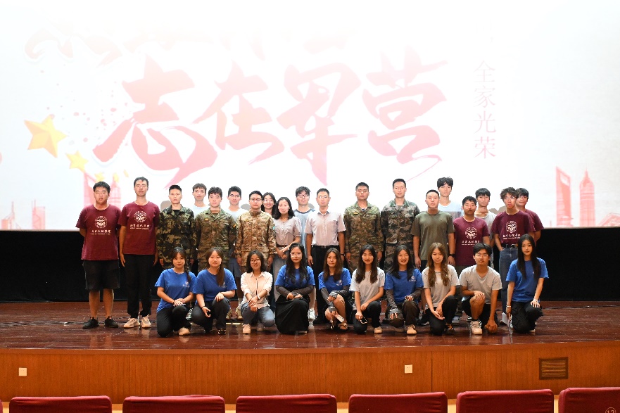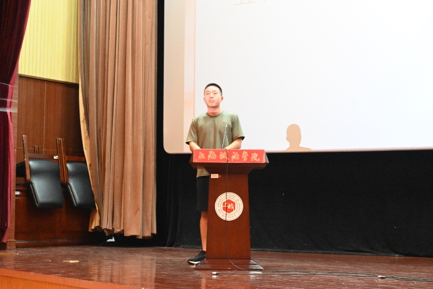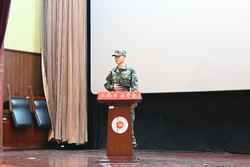 学院退伍士兵代表王世豪、王子贤、唐晨旭、陈佳佳、赵泽华为新生做军旅生涯分享,讲述自己的参军初心、军旅生涯中的点滴故事,以及在军营中得到的淬炼与成长。他们鼓励全体新生能够坚定理想信念,涵养家国情怀,趁年华正好,奔赴军营,演绎热血青春。
