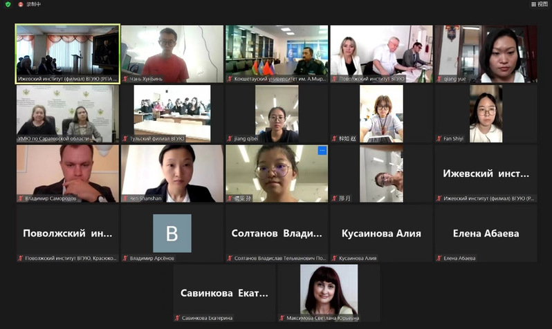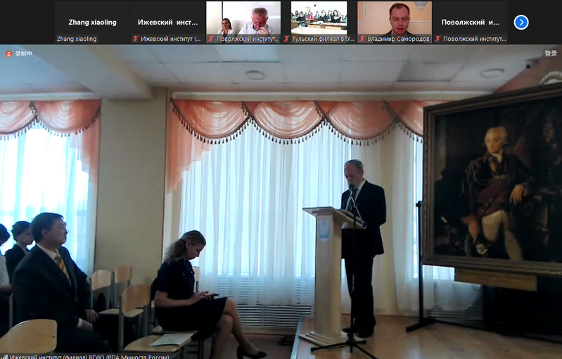 2023年9月27日,应俄罗斯国立司法大学邀请,语言文化学院(国际交流学院)岳强、张晓玲、任珊珊三位教师以及2023级翻译硕士研究生陈鸿彬、孙倩旻、赵梓如、邢月、蒋奇贝,涉外法律硕士研究生范诗怡共九位师生线上参加了俄罗斯国立司法大学举办的大学间科学与实践会议“加甫里尔•杰尔查文 — 诗人,律师,政治家”。