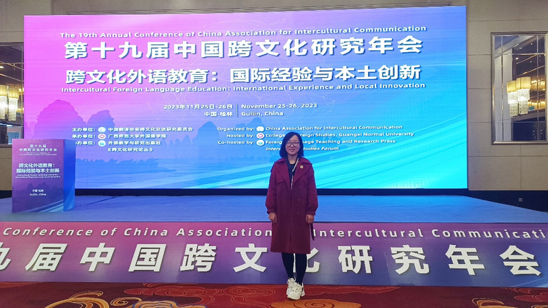 2023年11月25日至26日,语言文化学院张晓玲副教授参加了由中国翻译协会跨文化交流研究委员会主办,广西师范大学外国语学院承办,外语教学与研究出版社和《跨文化研究论丛》编辑部协办的第十九届中国跨文化研究年会。