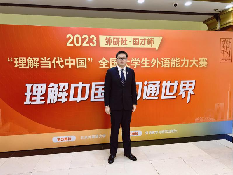 2023年12月5日,备受瞩目的“外研社•国才杯”“理解当代中国”全国大学生英语能力系列大赛全国决赛隆重举行。上海市决赛笔译金奖获得者国际法学院法律硕士(国际仲裁)23702班邹世豪同学(指导老师:范湘萍)、阅读金奖获得者语言文化学院(国际交流学院)陈雅璐(指导老师:陆月华)、周路凯同学(指导老师:朱雷)代表我校与上海市参加全国决赛。