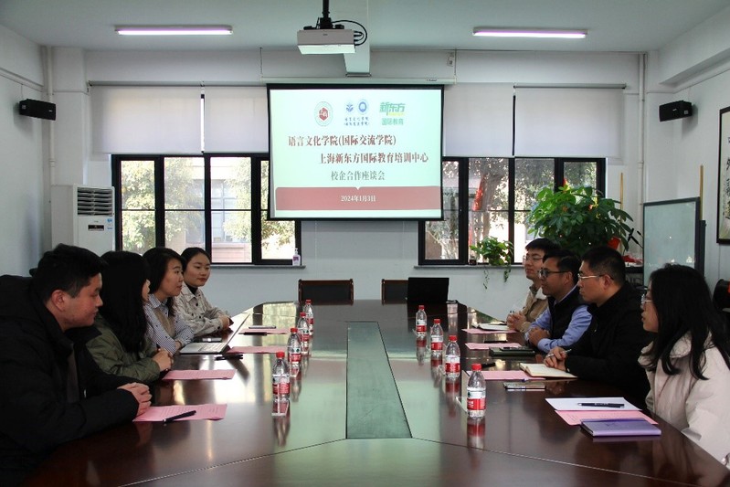 为促进校企联动,为在校学子提供更广阔的实践机会和职业发展平台,1月3日下午,语言文化学院(国际交流学院)与新东方国际教育培训中心在明文苑A1-101会议室举行校企合作洽谈会。学院党总支书记魏传成、党总支副书记魏洲阳、2024届毕业生辅导员杨炎烽、张宇洋,新东方国际教育市场总监澈丽根、市场经理陈露瑶、市场组长蒋慧甜、线下市场负责人李天生等参加洽谈。
