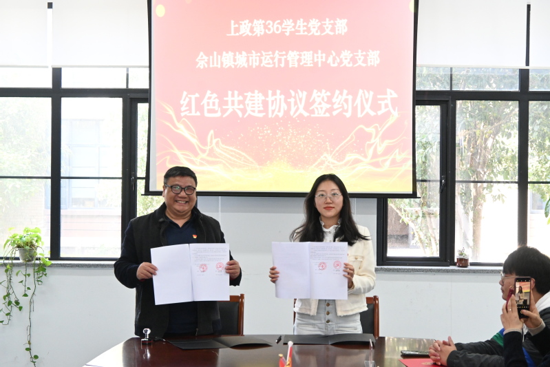 为进一步促进区域化党建融合推进,语言文化学院(国际交流学院)学生党支部近日与佘山镇城市运行管理中心党支部开展了主题为“党建引领聚合力,校地共建兴文化”的共建签约活动。学院党总支副书记魏洲阳,学生党支部书记张宇洋、赵倩莹,团委书记杨炎烽,留学生辅导员周占军以及学生党员代表共同参加。