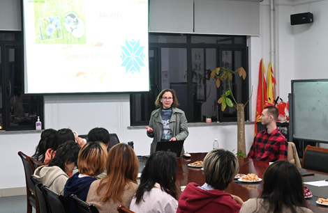 本次活动主题聚焦白俄罗斯国情文化,从国家象征、城市景点,到教育资源、文化艺术,再到语言互动,内容全面立体,让同学们了解了白俄罗斯的风土人情,开阔了视野,丰富了知识。活动过程中,同学们还品尝了白俄罗斯的零食饮品,并就自己感兴趣的问题与留学生展开交流。现场气氛活跃融洽,中外学子共同感受语言和文化的魅力。