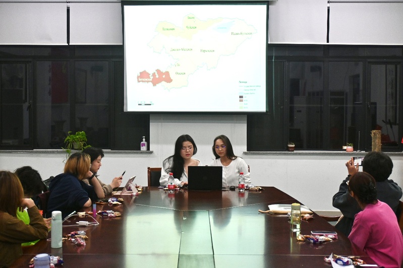 为加强中外青年学生交流,增进彼此友谊,提升青年学子的国际理解力和跨文化交际能力,4月16日晚,语言文化学院(国际交流学院)策划组织“语魅”外语文化沙龙(第三期)活动。本期沙龙由学院团委书记杨炎烽、留学生辅导员周占军主持,特别邀请学院吉尔吉斯斯坦留学生吉雅(Айпери)和阿米娜(Амина)主讲,学院俄语专业本科生代表参加。