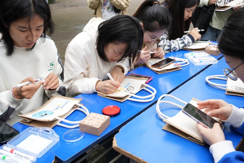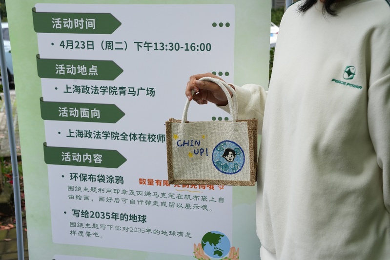 此次活动以“树立环保意识,宣传环保理念”为主题,由环保布袋涂鸦、明信片寄语及礼品抽奖三个环节组成。活动现场,同学们将自己对地球的热爱与祝福,皆化成缤纷色彩跃然于纸上,热烈的活动氛围给初霁的上政校园增添了旺盛的生命力。