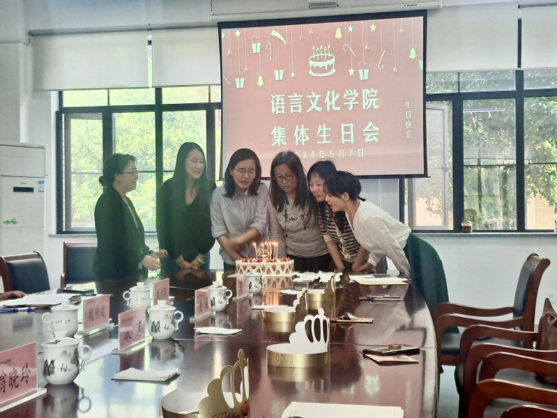 5月7日中午,语言文化学院(国际交流学院)在明文苑A1-101为5月份生日的教职工举办了一场温馨的集体生日会。